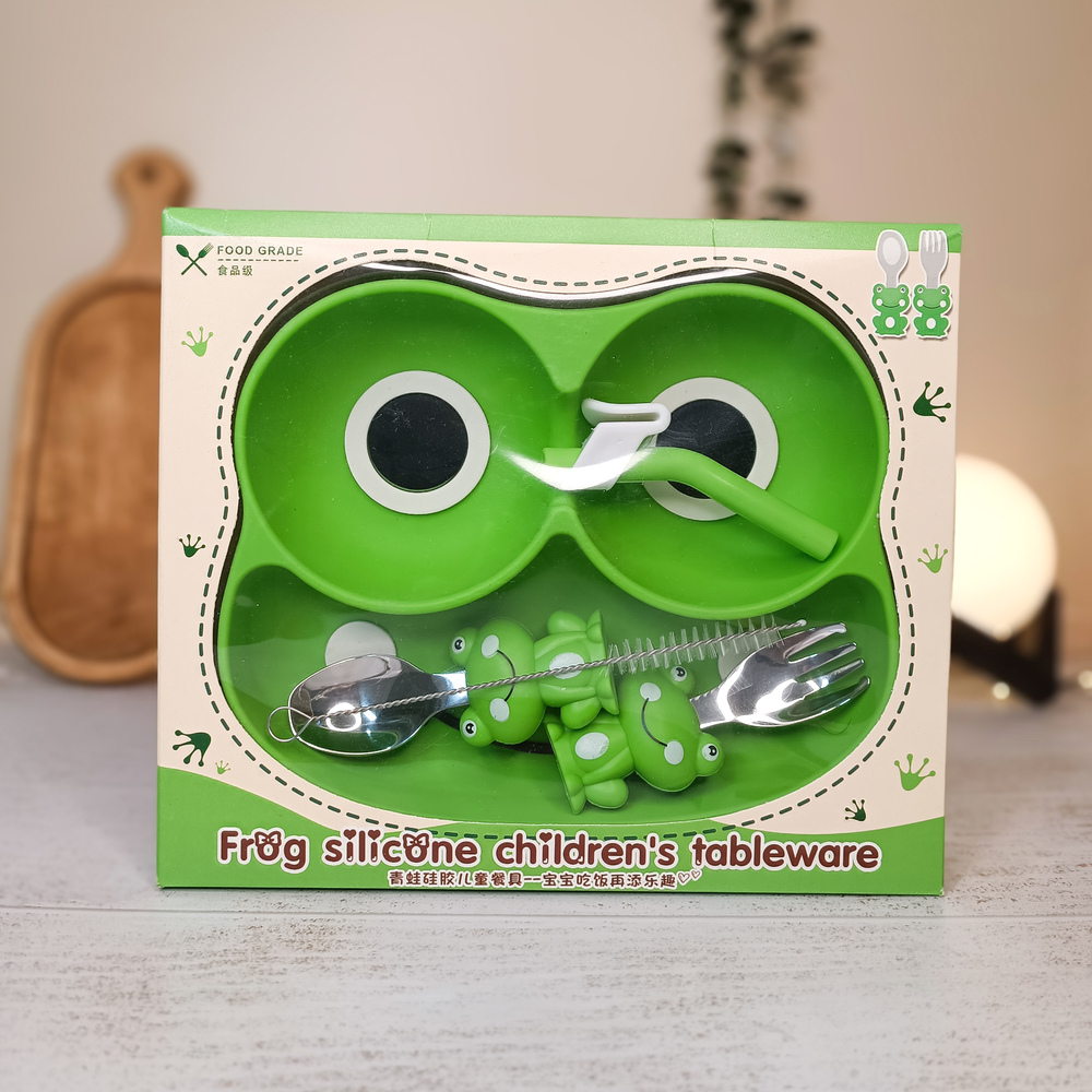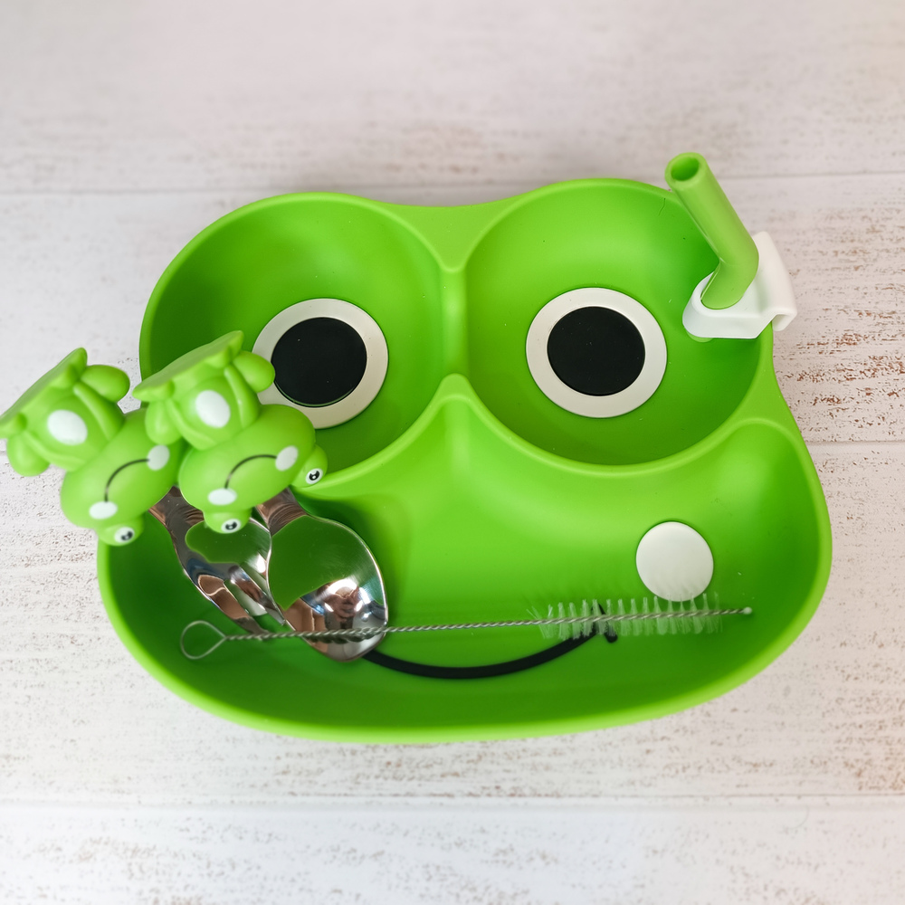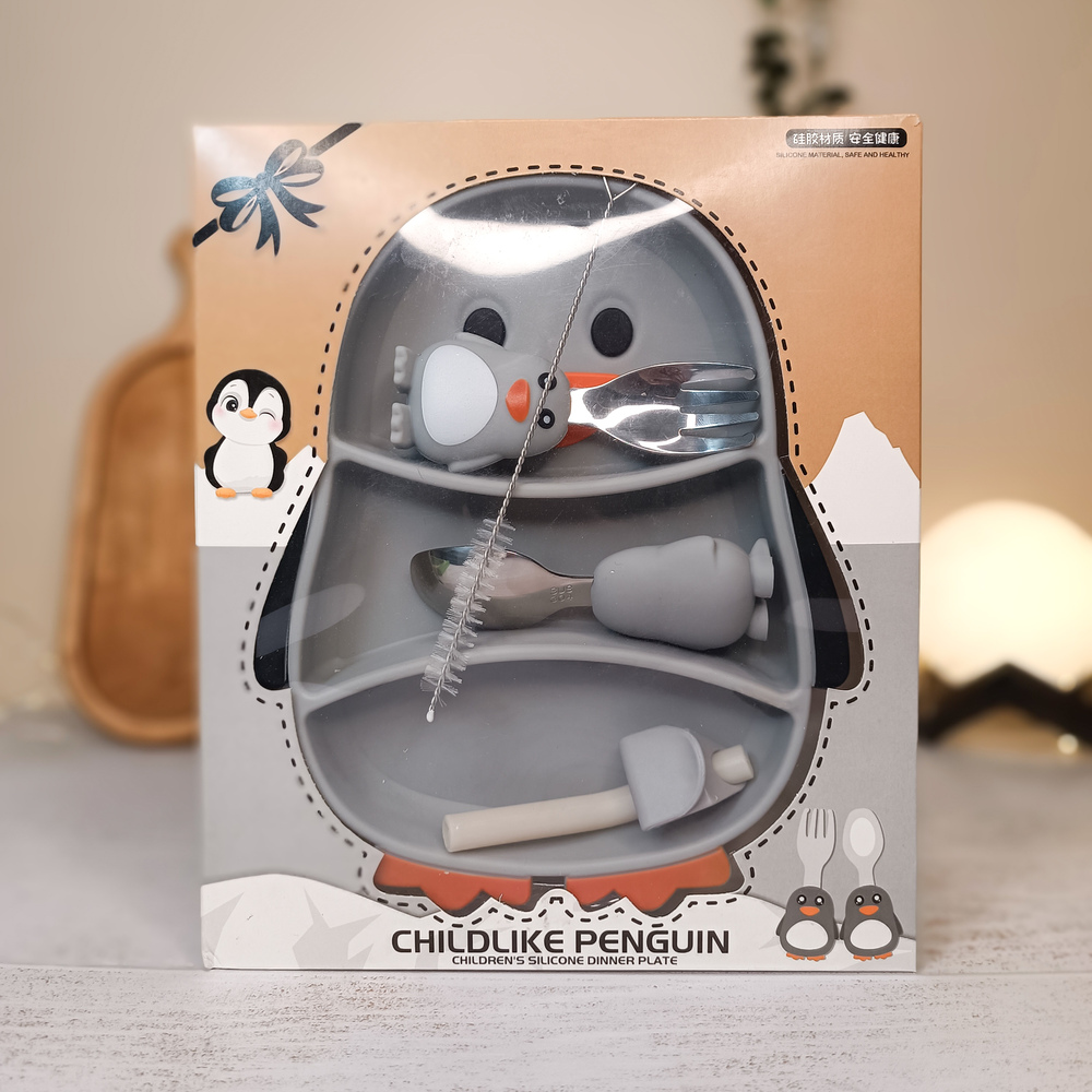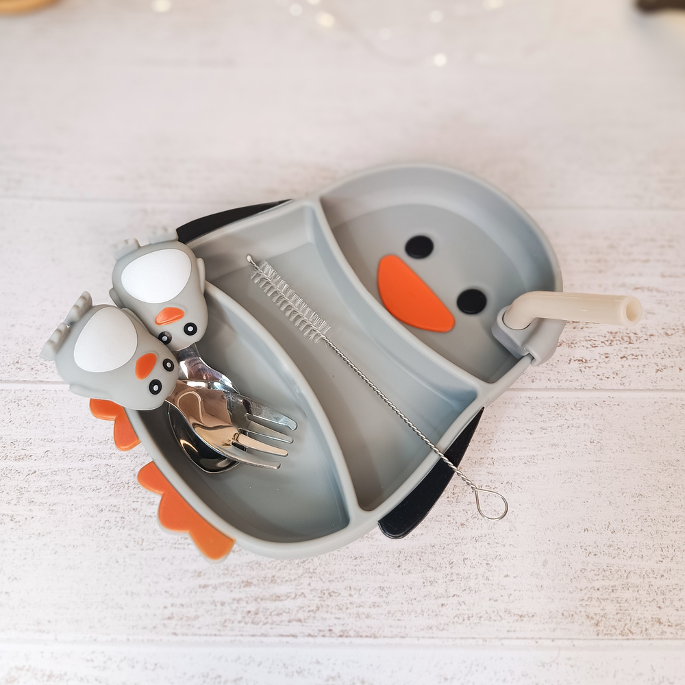قطعا داشتن یک ظرف غذای کارتونی و جذاب علاقه کودکان را نسبت به خورد غذا بیشتر می کند. ظرف غذا سیلکونی ۴ تکه کودکانه شامل یک ظرف غذا سیلیکونی یک قاشق و یک چنگال استیل ۳۰۴ با دسته سیلیکونی و یک نی و نی شور می شود. زیر این ظرف غذا به صورتی ساخته شده است که به سطح میز بچسبد و به راحتی جا به جا نشود.